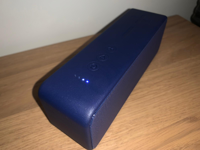 The speaker is available in black or navy. I received the navy version which you can see below.
